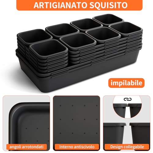 【Facile da gestire】 Utilizzando questo organizer per cassetti, puoi riporre ordinatamente i tuoi strumenti, in modo da poter trovare rapidamente gli strumenti di cui hai bisogno senza perdere tempo. Se hai bisogno di uno attrezzi da lavoro specifico, basta cercare lo strumento o la parte di cui hai bisogno nel vassoio di plastica corrispondente.. In questo modo, puoi eseguire le attività in modo più efficiente e aumentare la tua produttività.