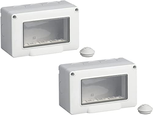 2 pezzi Cassetta con coperchio idrobox per esterno a 4 posti compatibile con Matix custodia per interruttori ip55 (4 Posti, Bianca)