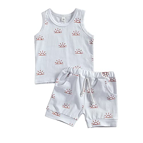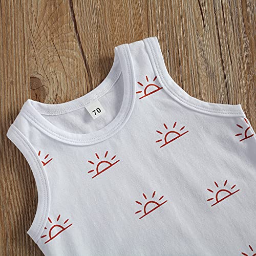 2 pezzi Set casual per neonato con stampa, motivo sole, canotta maniche + pantaloncini corti, vita elasticizzata, per bambini 0-3 anni, per estate bianco 0-6 mesi
