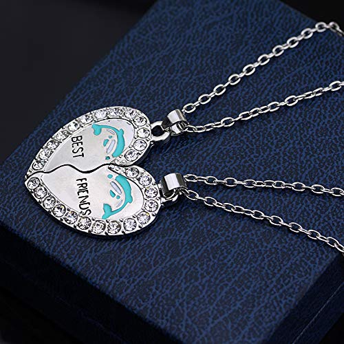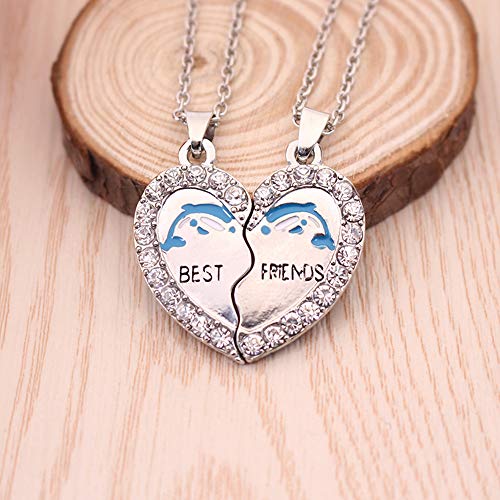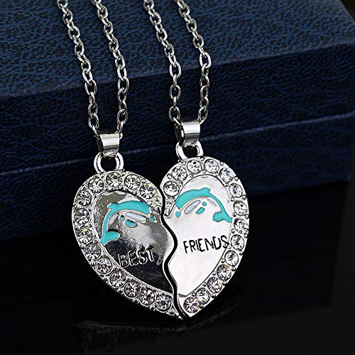 2 Pezzi Catena Pendente Donna Argento con Strass per Coppia, Cuore Amicizia collane Best Friends haslkette Incisione Delfino, Gioielli collane Partner per i Migliori Amici, Amante e Coppia Regali