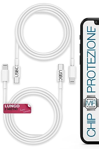 2 Pezzi Cavo Ricarica Compatibile Con iPhone, Cavo iPhone Originale Apple, Cavo USB C, 2 metri Ricarica Veloce Compatibile con Apple iPhone 14/13 Pro Max 12 Pro Max 11 X XS XR 8 7