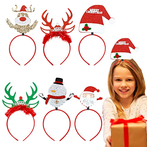 6 Pezzi Cerchietti Natalizi Fasce di Natale per Capelli Cerchietto Copricapo Glitter Renne Babbo Natale Pupazzo di Neve Cappello per Feste Natale Accessori Regali per Bambini Adulti di Natale