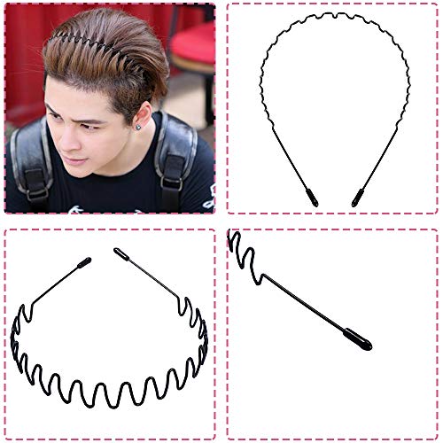 8 pezzi Cerchio Cerchietti e fasce per capelli per uomo e donna a onde, cinturino in metallo per capelli ondulati unisex (nero)