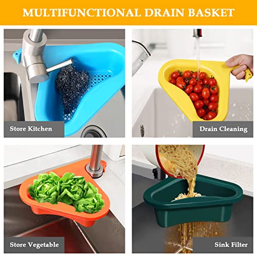 4 Pezzi Cestello di Scarico per Lavello da Cucina, Filtro per Lavello Triangolare con Spazzola per Stoviglie, Multifunzionale Filtro Lavello Cucina, Filtro per Lavello Triangolare da Cucina