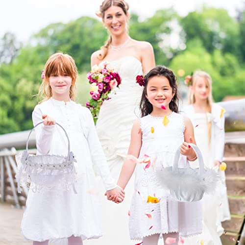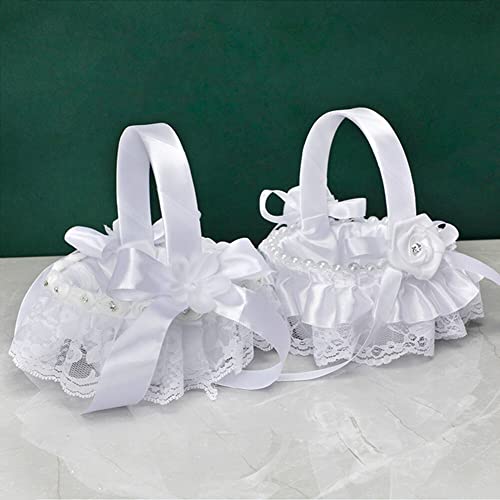 2 Pezzi Cestino Bianco per Fiori da Sposa, Cestino di Fiori per Matrimonio, Cestini da Sposa Fiore, Cestino Bianco Matrimonio Cestino Damigelle per Matrimonio Cerimonia di Nozze