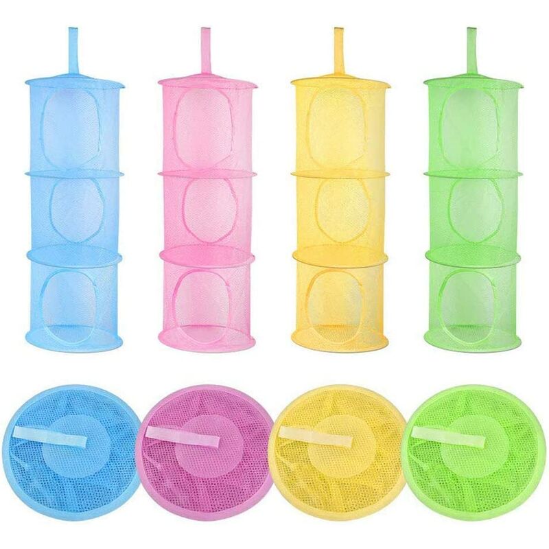 Materiali di alta qualità: realizzati con materiali in rete e filo di ferro di alta qualità, resistenti all'usura, durevoli, eccellenti antimuffa, antibatterici e buona ventilazione. 4 colori: la confezione contiene quattro colori: blu, rosa, verde e giallo. È possibile utilizzare colori diversi per riporre diversi tipi di oggetti per organizzare la casa. Pieghevole: l'organizer pensile a 3 livelli è pieghevole, comodo da riporre quando non ne hai bisogno, può essere utilizzato all'interno la casa o in viaggio, ottimo per organizzare i tuoi effetti personali e creare spazio di archiviazione aggiuntivo. Facile da vedere: il design a griglia in rete pieghevole del nostro contenitore sospeso in rete, che è traspirante e inodore, i tre livelli sono griglie mesh, facile per te vedere cosa c'è dentro e assicurarti dov'è il posto giusto delle cose di cui hai bisogno. Ogni livello ha un'ampia apertura e ogni apertura non si trova nello stesso posto, questo design lo rende molto comodo per