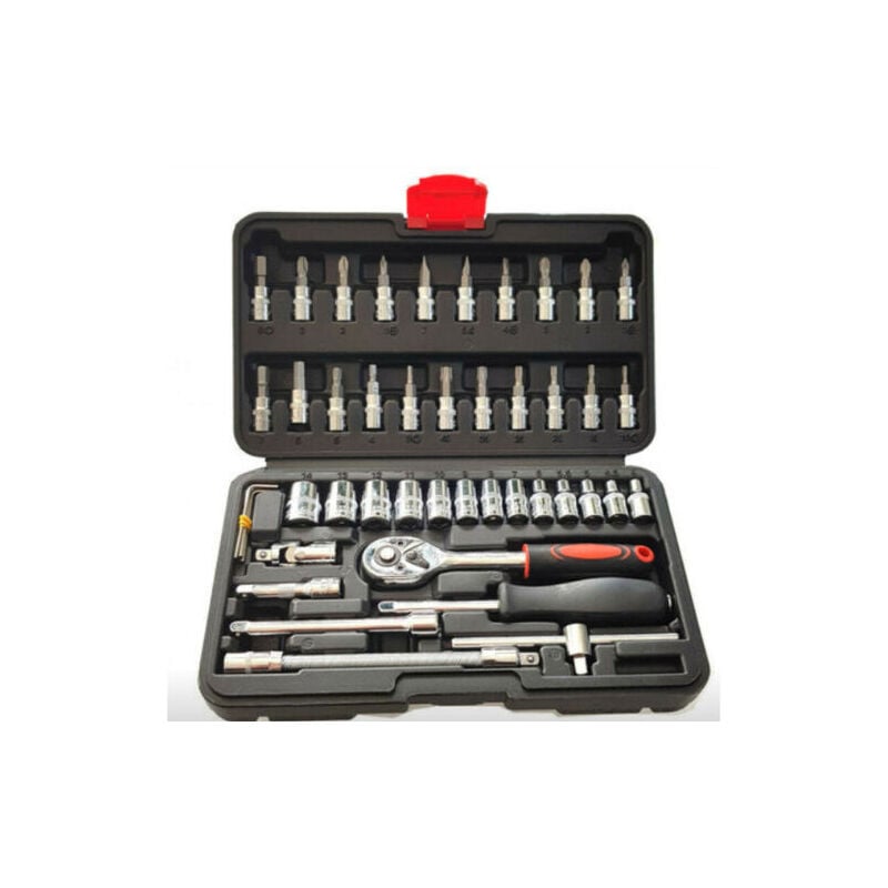 Ottima valigia attrezzi contenente 46 pezzi Se volete avere sempre a portata di mano degli attrezzi affidabili per lavorare in sicurezza, questo set di utensili è quello che fa per voi! Questi sono attrezzi di altissima qualità, realizzati con la massima cura e la precisione, in cromo e confezionati in una cassetta di resina. Questo set contiene attrezzi professionali ideali sia per la casa che per l'officina! MAGGIORI INFORMAZIONI Caratteristiche principali: 1 Chiave a bussola (cricchetto) da 1/4 di pollice 13 dadi intercambiabili (4/4,5/5/5,5/6/7/8/9/10/11/12/13/14 mm) 21 punte intercambiabili (FD 4.5/5/5.7 - PH 1/2/3 - PZ 1/2/3 - HW 3/4/5/6/7/8 mm - T 10/15/20/25/30/40) 3 chiavi esagonali a brugola (1.4/2/2,5 mm) 2 estensioni da 2" e 4" (50 mm e 100 mm) 1 estensione flessibile da 6" 1 Cricchetto 1/4 "commutabile 1 adattatore 1 impugnatura a rotazione 1 Guida 115 mm L 1 raccordo universale Attacchi esagonali estensibili e attacchi per cacciavite La confezione contiene: Nr.1 Cassetta