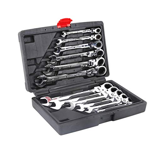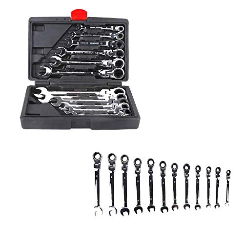 12 Pezzi Set di Chiavi a Cricchetto,8-19mm Chiavi Combinati Bidirezionali,Wrench Kit Hardware Riparazione Auto Utensili A Mano Testa Flessibile