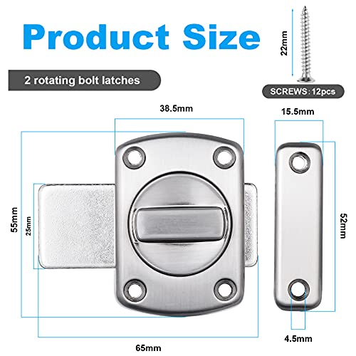 2 Pezzi Chiavistello girevole per porta, chiusura a chiavistello, chiusura per cancello, chiusura di sicurezza, in lega di zinco spazzolata, con viti, per armadietti, cassetti, mobili