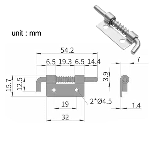 ⚙️Otterrai: 6 serrature a molla in acciaio inossidabile, la lunghezza totale del blocco a molla è di 55 mm, l'altezza è di 16 mm, il diametro è di 7 mm e l'apertura fissa è di 4,5 mm