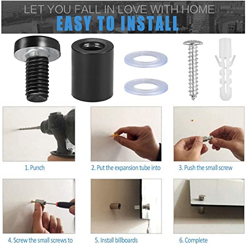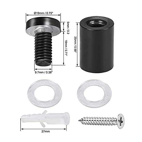 8 Pezzi Chiodi a Vite Pubblicitari, Inossidabile Distanziatori di Vetro, Chiodi Pubblicitari Montaggio Vetro, 19 x 25mm, con Viti e Tubo di Espansione, per Vetro, Pannello Segnaletico, Nero