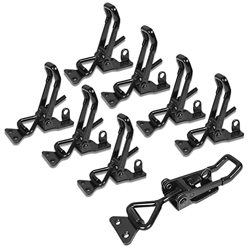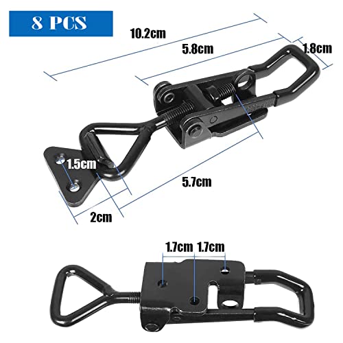 8 Pezzi Chiusura a Leva Regolabile in Metallo, Fibbia in Metallo, Morsetti a Ginocchiera Chiavistello 100kg, per Armadi, Porte e Finestre, Scatole (Nero)