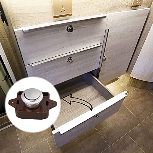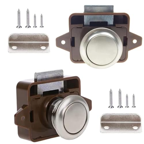 2 Pezzi Chiusura a Pulsante, Serratura a Pulsante, Push-Lock, Pulsante Per Serratura Armadio, Cupboard Door Catch Lock, per Camper, Yacht, Nave, Armadi Appesi, Cassetti (Marrone)