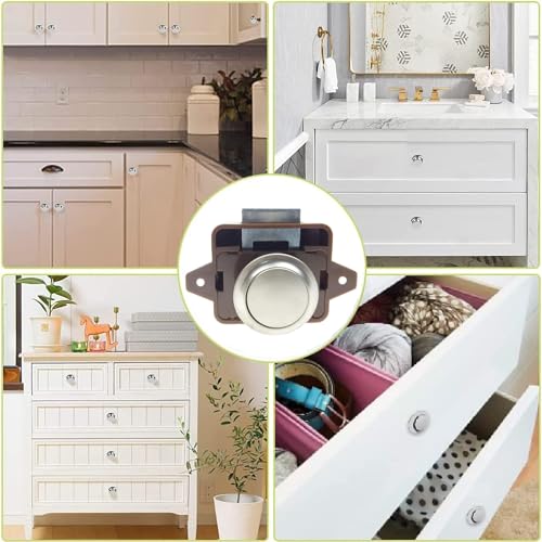 【Materiale Di Qualità】Catch della serratura del gabinetto, la nostra serratura della maniglia del pulsante è fatta di plastica ABS di alta qualità, lega di zinco. Il pulsante ha bisogno di un foro con un diametro di 20mm. inossidabile e resistente alla corrosione, può essere utilizzato a lungo.
