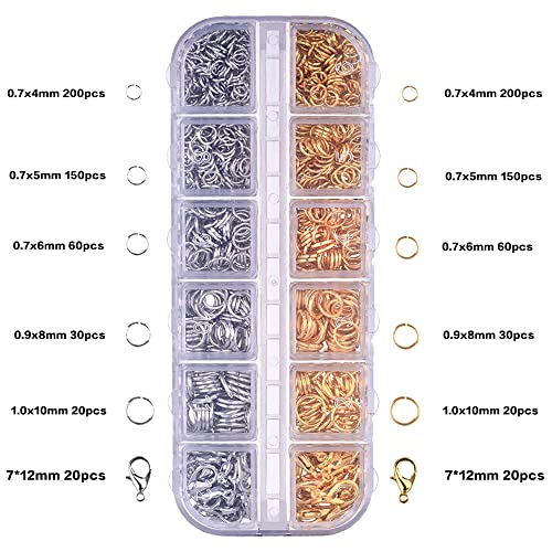 ◆Confezione:Anello di salto con scatola inclusa 40 chiusure a moschettone 7x12 mm e 920 anelli di salto aperti.L'anello di salto ha 5 dimensioni 10 mm,8 mm,6 mm,5 mm,4 mm in colore argento e oro.La confezione contiene anche 1 scatola di plastica.
