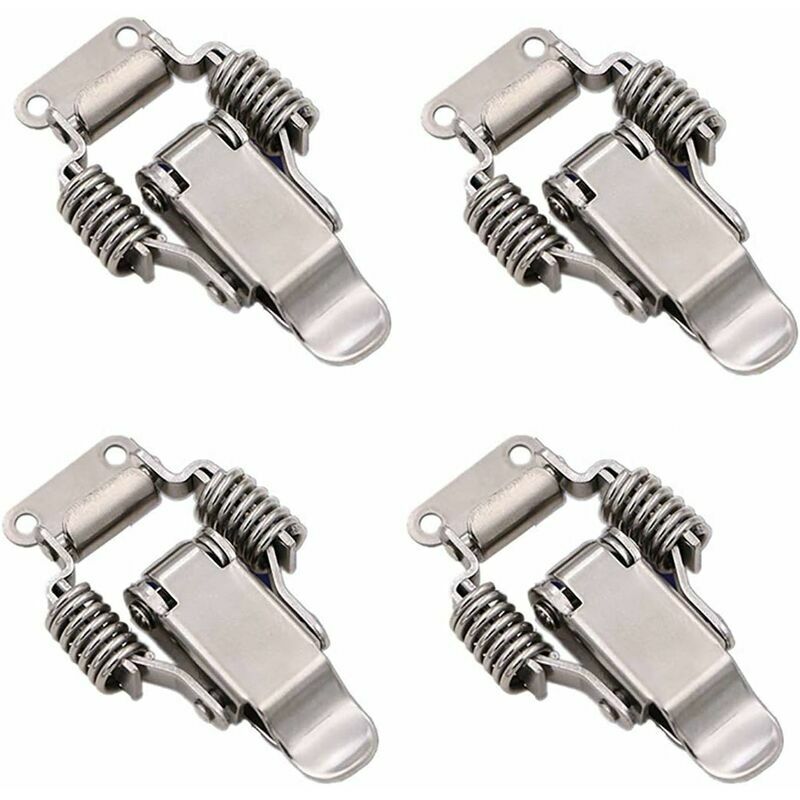 Realizzato in acciaio inossidabile 304 con proprietà antiruggine, molto resistente e durevole. Ottima fattura, qualità stabile, può resistere a decine di migliaia di aperture e chiusure Grande tensione, struttura compatta, antiurto, maneggevolezza confortevole e buona resistenza agli urti, design a doppia molla ed eccellente tensione per una presa salda durante il bloccaggio. Può essere fissato saldamente sotto forti vibrazioni, non facile da staccare Ottima fattura, nessuna sbavatura, nessuna ferita alle mani, sicuro da usare Molto facile da installare, solo sulla porta dell'armadio o su scatola fissa con viti Perfetto per armadio, porta, scatola, borsa senza serratura o maniglia rotta, gadget ideale per casa, ufficio, ristorante, fabbrica ecc. Informazioni sul prodotto: Realizzato in acciaio inossidabile di alta qualità per una maggiore durata - Perfetto come chiusura a scatola o chiusura a leva per coperchi, sportelli e innumerevoli altre applicazioni. - Ampiamente utilizzato per