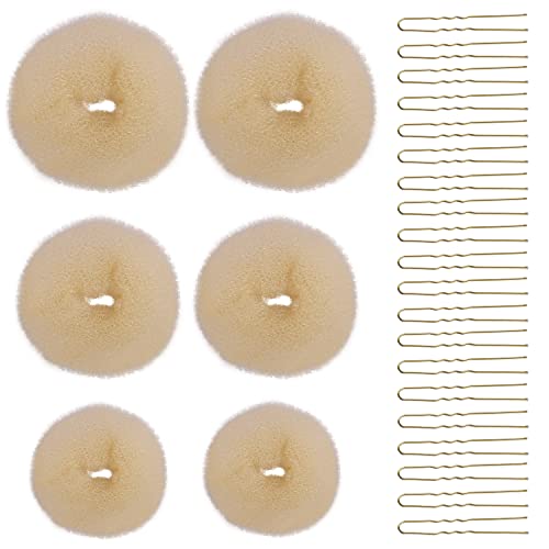 6 Pezzi Ciambella per Chignon, Creatore per Pane Ciambella Accessori Capelli Chignon con 20 Clip a Forma di U per Donne e Ragazze (Beige)