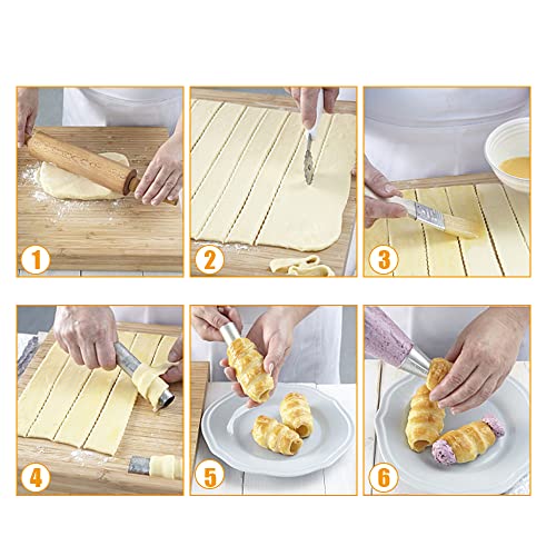 【Non appiccicano e sono facili da rilasciare】Cannoli stampi materiale in acciaio inox liscio, nulla si attacca allo stampo, alta resistenza al calore, la torta si stacca facilmente dallo stampo. Possono essere facilmente puliti con la spazzola di pulizia inclusa.