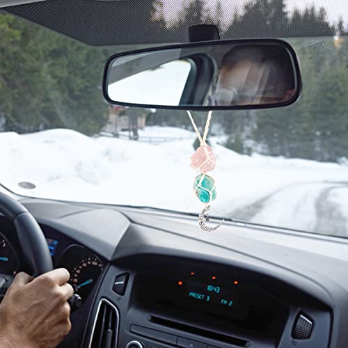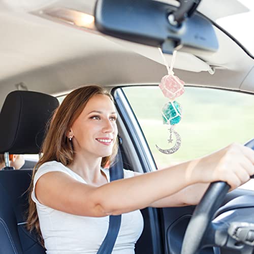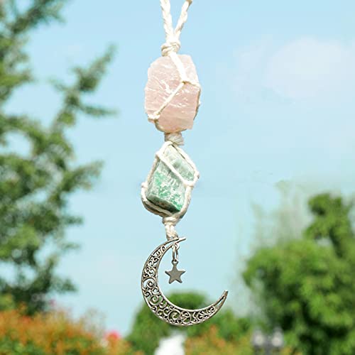 Quarzo rosa e fluorite verde, ognuno con una falce lunare, una stella e una combinazione unica di accessori per auto in cristallo. Questi ciondoli per specchietto retrovisore auto ravvizzeranno gli interni della tua auto.