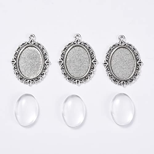 10 pezzi, 5 pezzi, ciondolo a forma di lunetta vuota, in metallo, 18 x 13 mm, ovale, 5 pezzi, in vetro trasparente cabochon, 32x20mm Medaillons für 18x13mm Cabachon, Ottone Vetro