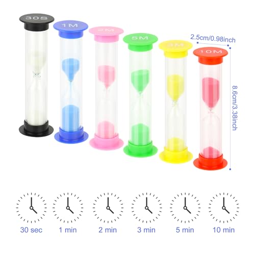 6 Pezzi Clessidra Timer Set, Clessidra Sabbia Colorata Timer, Sandglass Sand Clock per Spazzolini a Clessidra Timer, cucina Timer, 30 Secondi 1 min 2 min 3 min 5 min 10 min set