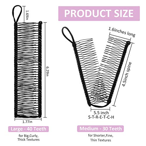 Design a doppio pettine: le nostre mollette per capelli a banana hanno un design elastico a doppio inserto, possono tenere i capelli saldamente, la forte fascia elastica tra i 2 pettini potrebbe allungarsi intorno ai capelli, basta usare i 2 pettini insieme per evitare di danneggiare i capelli