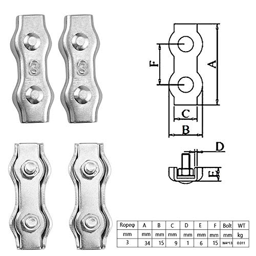 ★ Facile Usare: I morsetti per funi metalliche duplex sono costituiti da prese con viti e anelli di tenuta. La sua caratteristica è un design semplice e pratico, facile da usare.