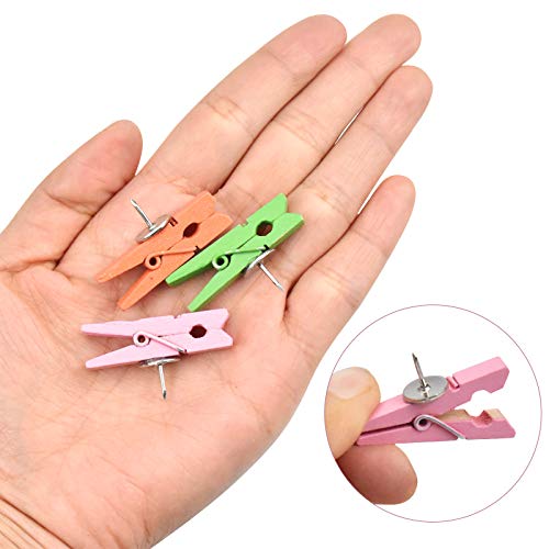 [Materiale]: le clip sono in legno e le puntine sono in metallo. Le morbide clip in legno possono fissare meglio i tuoi oggetti. I perni di metallo sono resistenti e riutilizzabili.