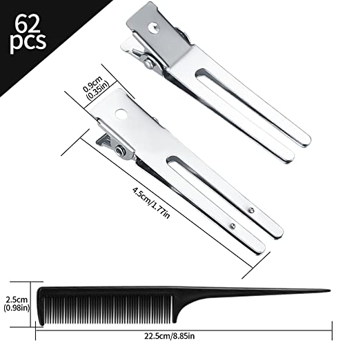 62 Pezzi Coccodrillo Alligatore Clip per Capelli Metallo, Doppio Punta Spillo Ricciolo Impostazione Sezione Capelli Clips, Mollette per Capelli Donna, con Pettine