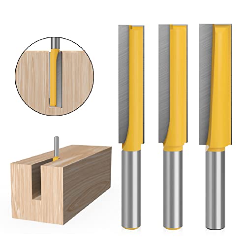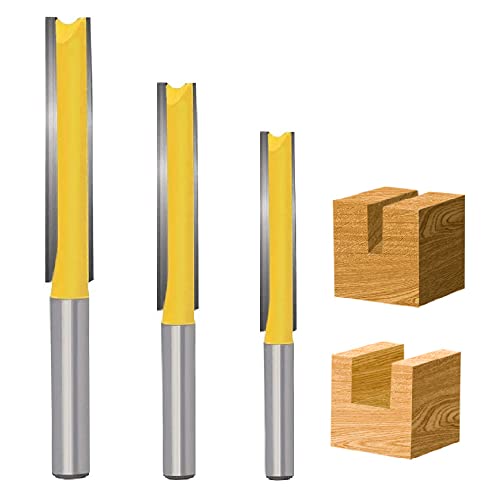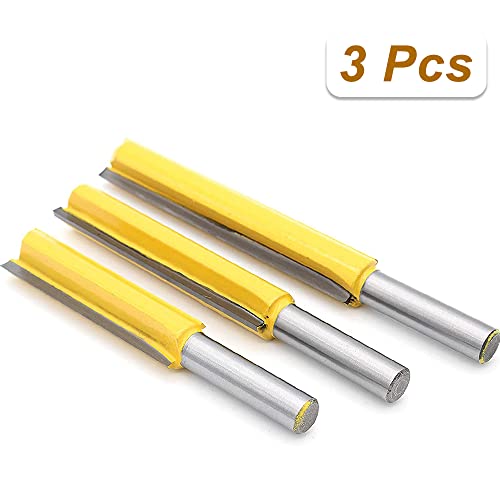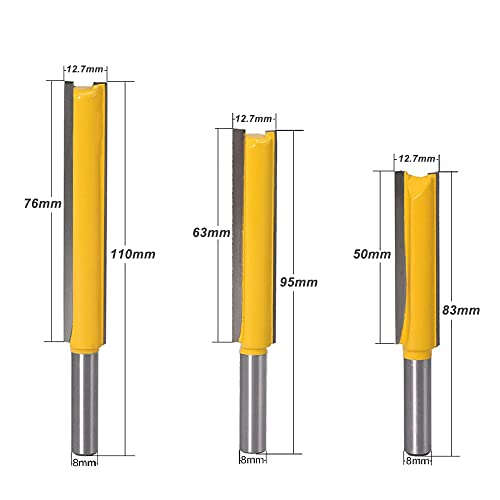 3 pezzi Codolo 8MM Punta, Set Frese Dritte con Gambo, Fresa Dritta a Doppia Scanalatura, Doppia Scanalatura Fresa Lavorazione Legno, Extra Lungo Fresa, Frese Professionali per Lavorazione del Legno