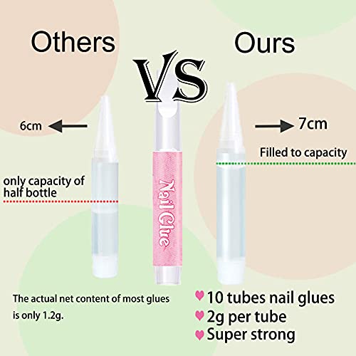 10 Pezzi Colla Per Unghie - ASENTER Super Forte Colla per Unghie Finte Tips Nail Bond Asciugatura Istantanea