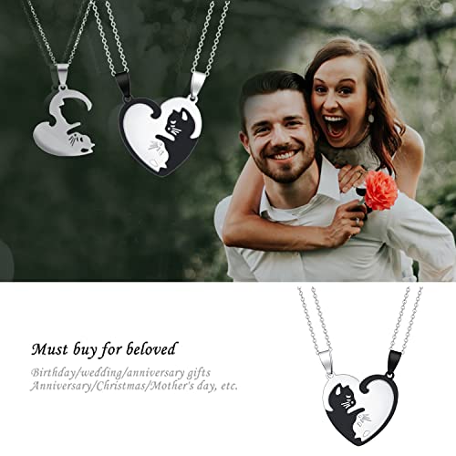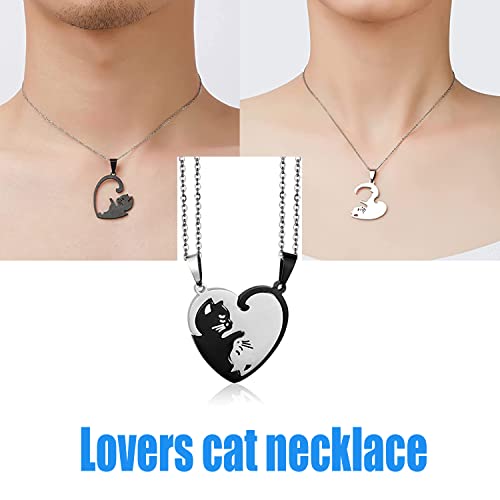2 Pezzi Collana per Coppie in Argento Nero, Collane con Ciondolo a Forma di Puzzle a Cuore, 2 Collane con Ciondolo a Forma di Cuore di Gatto Collana con Ciondolo Gatto Collana con Ciondolo Puzzle
