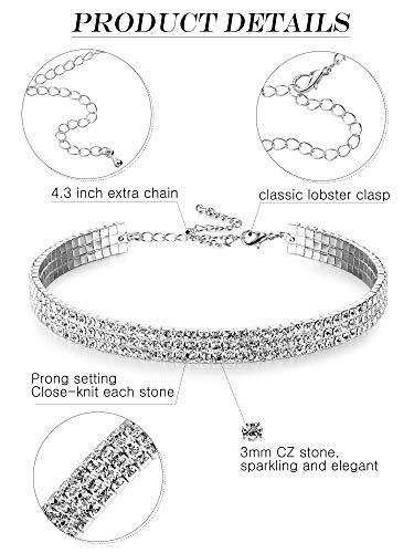 Il pacchetto include: riceverai 2 girocolli in strass argentati, include girocollo a 1 fila e girocollo a 3 file, i diversi stili di design possono soddisfare le tue diverse esigenze e abbinamenti, e sono accessori luccicanti da abbinare al tuo outfit, aggiungi un tocco in più al tuo look