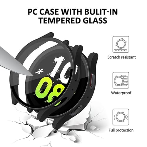 Compatibilità: custodia protettiva per PC con protezione dello schermo in vetro temperato compatibile per Samsung Galaxy Watch 5 40mm 44mm/Galaxy Watch 5 Pro 45mm. (Si prega di confermare il modello dell'orologio prima dell'acquisto.)