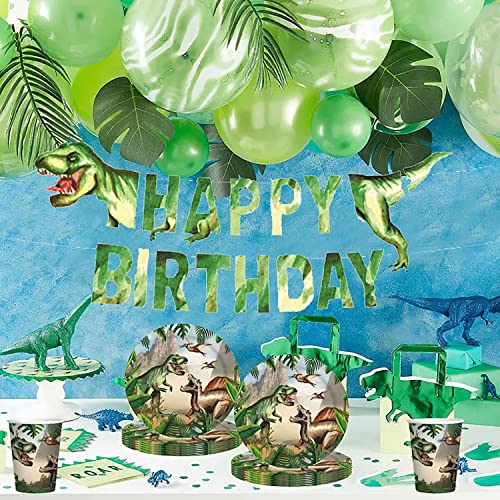 101 Pezzi Set Compleanno Dinosauri, Forniture per Feste di Dinosauro, Stoviglie Dinosauri, Dinosauri Piatto Compleanno, Tazze, Piatti, Carta, Cannucce, Tovaglia, per Picnic, Compleanni (20 Ospiti)