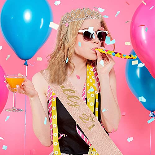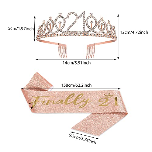 3 Pezzi 21 Compleanno Fascia Corona Spille Set Oro Rosa È la fascia del mio diciottesimo compleanno, Diadema e Spilla per Ragazze, 21 °Compleanno Decorazione Ragazze