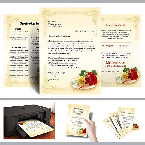 20 pezzi Set completo Fiori & Petali, Amore & Matrimonio, BOUQUET DI FIORI 10 fogli di carta da lettera e 10 buste DIN LANG (senza finestra) | Paper-Media