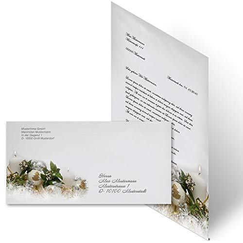 20 pezzi Set completo Natale, BUONE FESTE - IT 10 fogli di carta da lettera e 10 buste DIN LANG (senza finestra) | Paper-Media