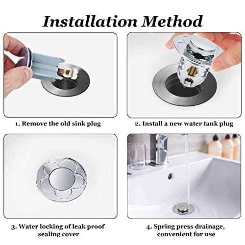 【Facile da installare】 Confezione da 2, nessun attrezzo richiesto, plug and play, installazione rapida e semplice. Basta rimuovere il vecchio tappo di scarico del lavandino e inserire il nuovo tappo di scarico del lavandin