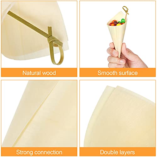100 Pezzi Coni di Cibo Coni Degustazione Legno con 100 Pezzi Scelte per Cocktail di Bambù, Coni di Legno Usa e Getta Porta Gelato per Alimenti per Cibo e Feste in Casa Buffet per Eventi