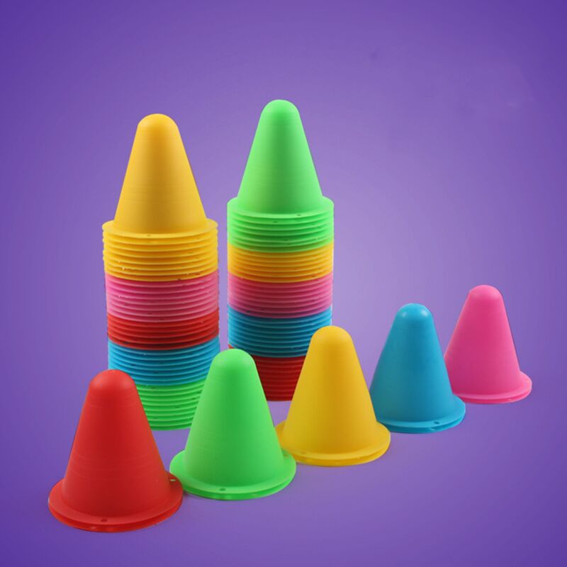 Dimensioni: 7,8 x 7,5 cm, volume ridotto, facile da trasportare. Cono da 50 pezzi Materiale: plastica PE. Buona solidità alla luce, durevole, flessibile, leggero. 11 g per cono. Multicolore: colori brillanti e altamente visibili. Cone Plastic Obstacle viene utilizzato per definire un campo o obiettivi, ostacoli per lo slalom, esercizi, Adatto per pattinaggio a rotelle, skateboard e altri sport. Pacchetto: 50 pezzi Obstacle Pylones, 5 colori rosa, rosso, giallo, blu, verde, ci sono 10 coni per colore.