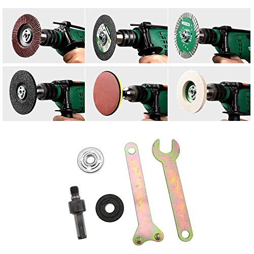Facile da usare: può cambiare il trapano elettrico in smerigliatrice angolare e macchina da taglio dando pieno gioco al trapano, facile da installare.Con esso, a condizione che il trapano possa incontrare la molatura del trapano elettrico, il taglio di piastrelle, il legno, la lucidatura dei metalli lavoro.