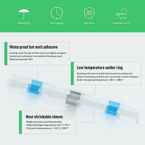 【Semplice e conveniente】 L'operazione è semplice e fa risparmiare tempo e può essere eseguita spostando il connettore sulla connessione del filo, riscaldando e restringendo, senza saldature, senza crimpare, più veloce e più facile di altri metodi.