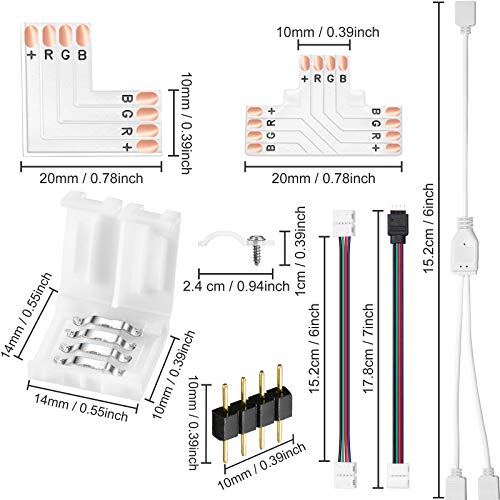 Compatibile con: il kit connettore LED si adatta alle strisce LED SMD 5050 RGB da 0,39 pollici/ 10 mm, compatibile con strisce impermeabili e non impermeabili;