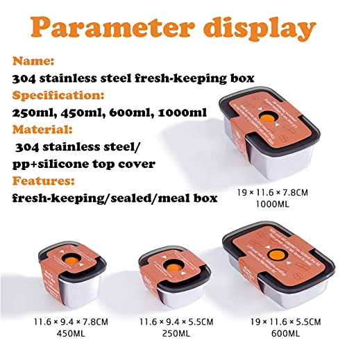 【Contenitore per alimenti in acciaio inossidabile da 5 pezzi】 set 5 contenitori in acciaio inossidabile e 5 coperchi di chiusura abbinati. Rettangolo 1*(1000ml) + 1*(600ml) + 1*(450ml)+2*(250ml) Questa bento box è stata progettata con nidificazione, quindi i contenitori più piccoli si inseriscono nei contenitori più grandi per una facile conservazione, risparmiando spazio.