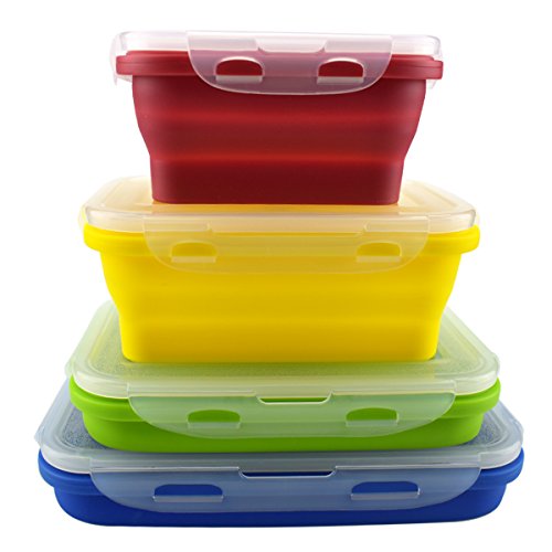 4 pezzi Contenitori di immagazzinaggio di alimenti in silicone, contenitore in silicone pieghevole Bento Box - BPA gratuito, forno a microonde, lavastoviglie e congelatore Cassaforte