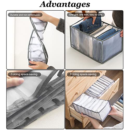2 pezzi Contenitori Pieghevoli Per Vestiti, cassetti organizer con 7 scomparti, Organizer Cassetti Armadio per pantaloni, jeans, leggings, magliette (Grigio, 36 * 25 * 20cm)
