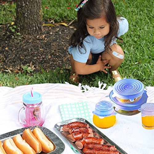 12 Pezzi Coperchi in Silicone Estensibile Diverse Dimensioni Stretch Coperchio BPA Free Coperchi Riutilizzabili Elastici per Ciotole lattine Bianco e Blu