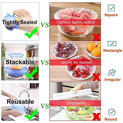 ◆Multifunzione: I coperchi elastici in silicone possono essere utilizzati per tazze, ciotole, tazze, piatti, lattine, coprifrutta, conservazione degli alimenti, salva alimenti, coperchi di pentole, coperchi di padelle, anguria, ananas, melone o altri frutti e verdure.