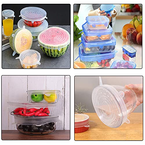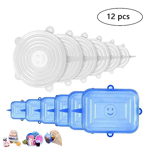12 Pezzi Coperchio Riutilizzabile per Alimenti, Coperchi in Silicone Estensibile, Eco Coperchio in Silicone Stretch, Coperchi in Silicone Stretch, per Alimenti Freschi (6 Rotondo e 6 Rettangolo)